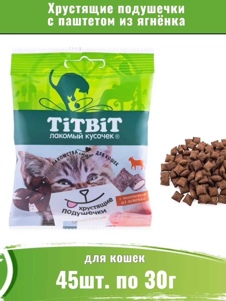Хрустящие подушечки для кошек с паштетом из ягненка – это вкусное и полезное лакомство. Паштет, содержащийся внутри каждой подушечки, имеет мягкую однородную консистенцию в виде мусса и неповторимый нежный вкус. Благодаря бережной технологии изготовления паштета, удалось сохранить полезные свойства мяса ягненка, поэтому лакомство богато ценным белком, важнейшими минералами и витаминами.