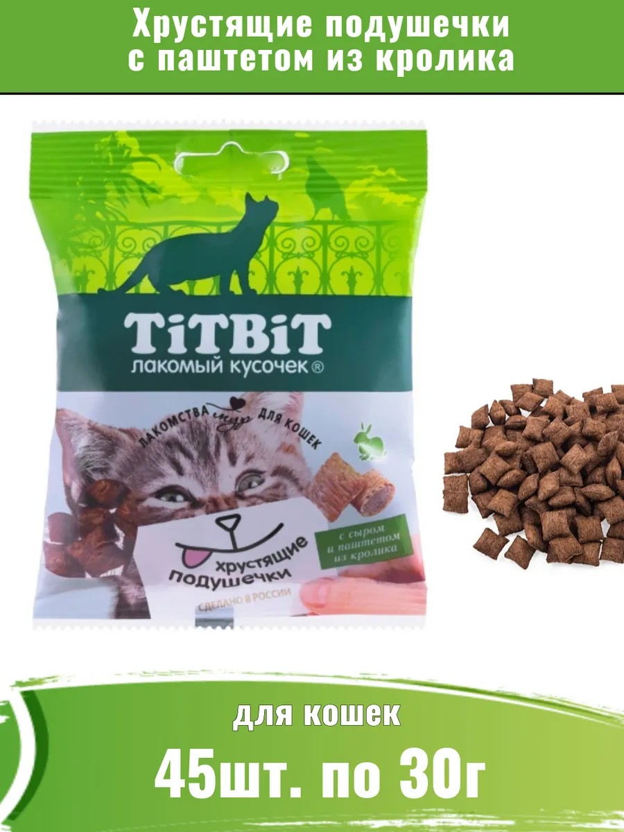 Хрустящие подушечки для кошек с сыром и паштетом из кролика – это вкусное и полезное лакомство. Паштет, содержащийся внутри каждой подушечки, имеет мягкую однородную консистенцию в виде мусса и неповторимый нежный вкус. Благодаря бережной технологии изготовления паштета, удалось сохранить полезные свойства мяса кролика, поэтому лакомство богато ценным белком, важнейшими минералами и витаминами.