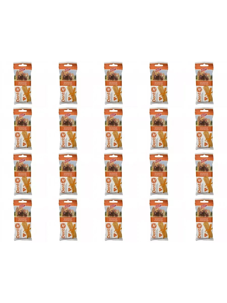 TiTBiT Dent cheese-flavored chew snack for small breed dogs, 20 packs of 40g. This preventative treat features a specially designed shape and texture, taking into account all the characteristics of small breed dogs. TITBiT products have received widespread recognition and approval from consumers, establishing a strong position in the Russian market. They do not contain artificial preservatives, colors, or genetically modified ingredients. All products are made from domestically sourced ingredients. Recommended for removing soft plaque, reducing the risk of tartar formation, and massaging gums. Soft and easy to break, they are suitable for small breeds. This treat is a supplementary food and cannot completely replace a daily diet.