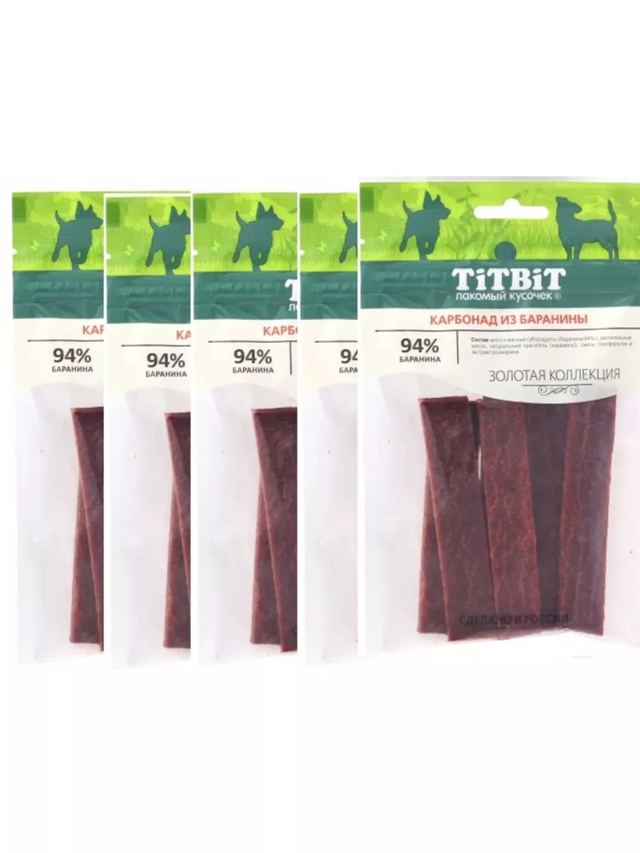 Золотая коллекция – это линейка лучших лакомств TITBIT, разработанных при участии владельцев домашних животных и их питомцев. Карбонад из баранины - это мясной деликатес, который, благодаря высокому содержанию мяса (94%) и бережной технологии приготовления, имеет привлекательный внешний вид, невероятный вкус и нежную текстуру. Баранина, входящая в основу лакомства, обогащает организм высококачественным животным белком и минералами. Ни один гурман не сможет устоять перед таким деликатесом.