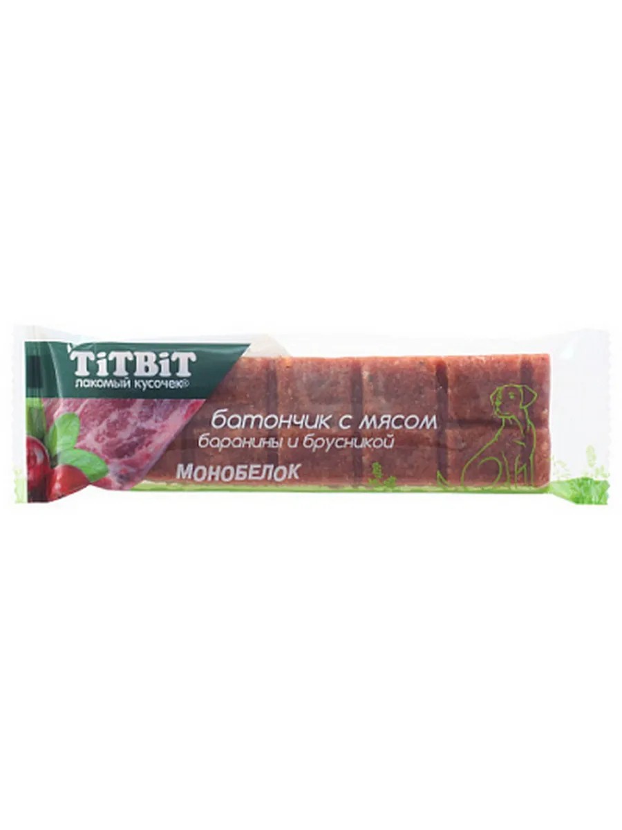 | Комплектация | Лакомство для собак Титбит (TiTBiT) Батончик с мясом баранины и брусникой, монобелок, 40гр |