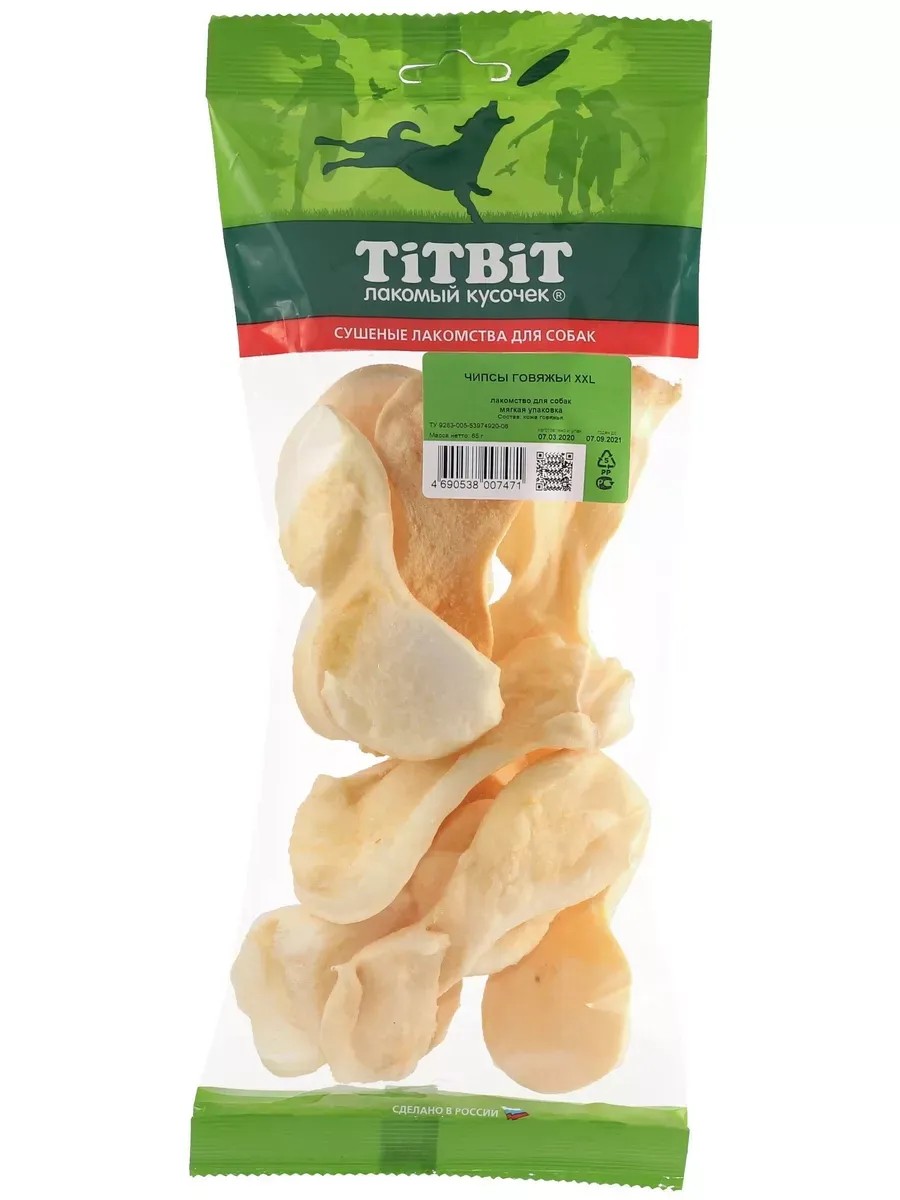 Лакомство для собак Титбит (TiTBiT), Чипсы говяжьи XXL, 65 гр