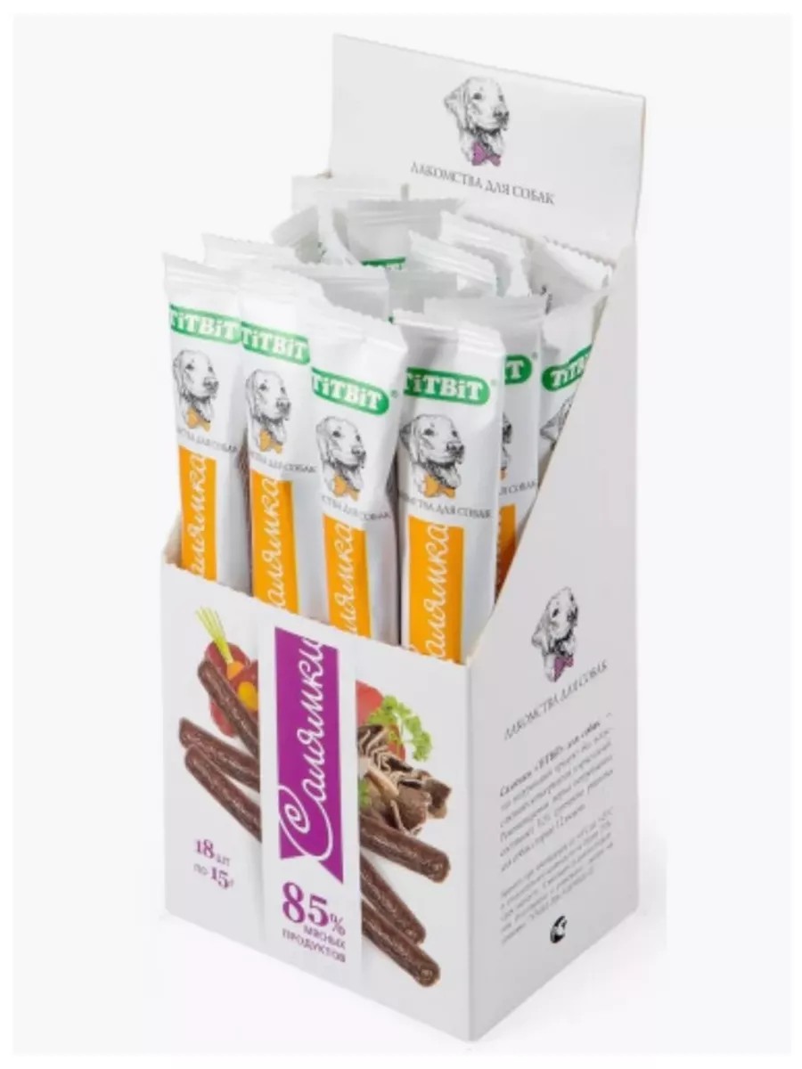 Колбаски для собак Салямка. Изготовлены из говяжьего мяса и мясных субпродуктов по колбасной технологии с добавлением таких полезных компонентов, как кукуруза, морковь и печень говяжья. Натуральный продукт, который не содержит красителей и консервантов. Состав: мясо и мясные субпродукты (более 85%), кукуруза, тыква, минеральные вещества. в 100 г: 60,2 г, жиры 11,4 г, зола 3,5 г, влага 8,7 г. Энергетическая ценность на 100 г: 438 ккал.