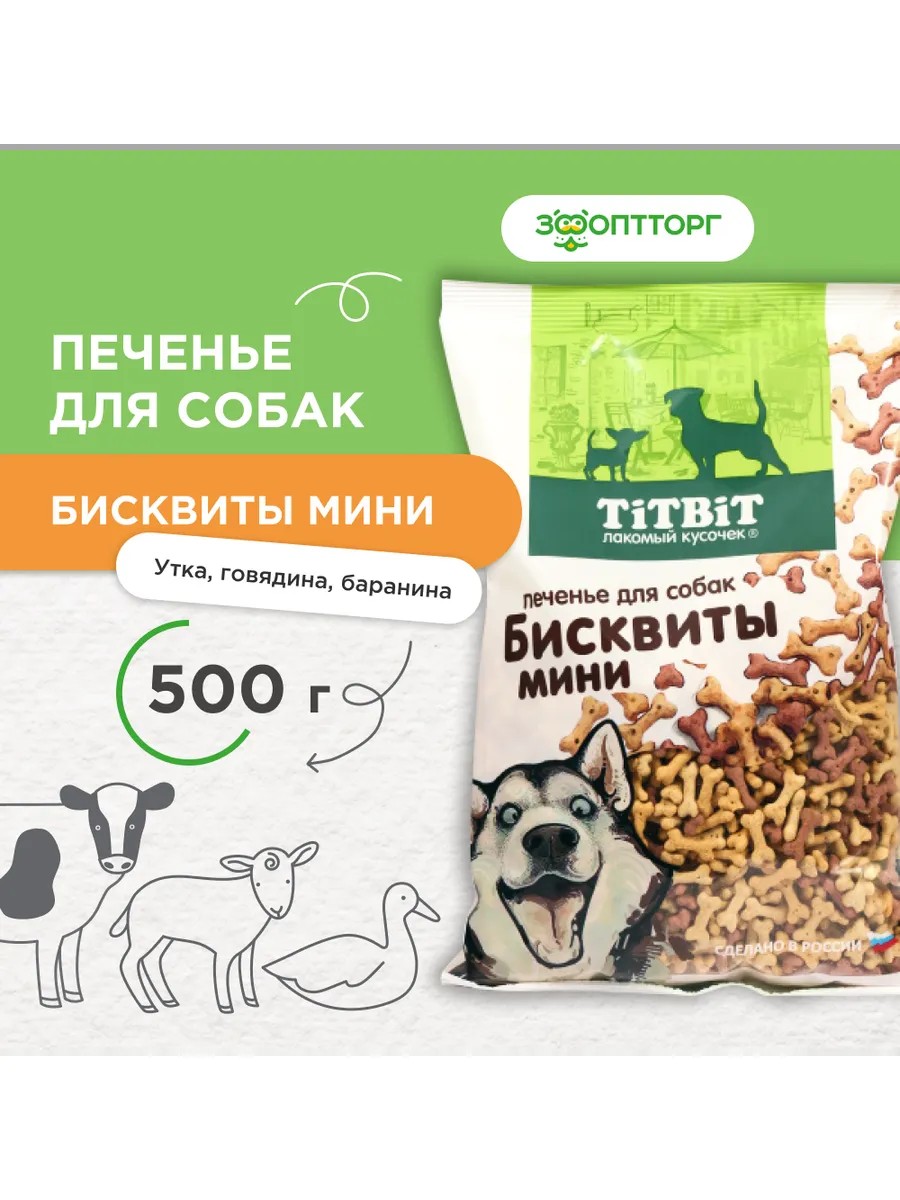 Почувствовать заботу и любовь Вашему питомцу поможет изысканное лакомство - Печенье для собак Бисквиты мясные мини. Угощение, созданное на основе натуральных ингредиентов, с добавлением трёх видов мяса (утки, говядины и баранины) и приготовленное по уникальной рецептуре и технологии TiTBiT.