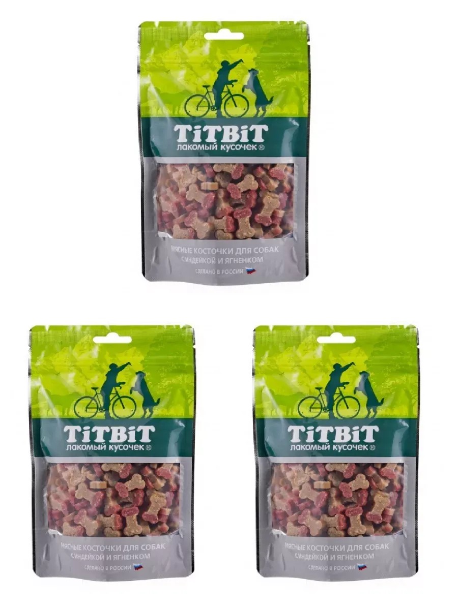 TiTBiT Turkey and Lamb Meat Bones for Dogs, 145g, 3 pcs. Turkey and lamb meat bones contain glucosamine, which stimulates cartilage regeneration and improves joint mobility. Ideal as a reward for training, obedience training, or simply for good behavior.