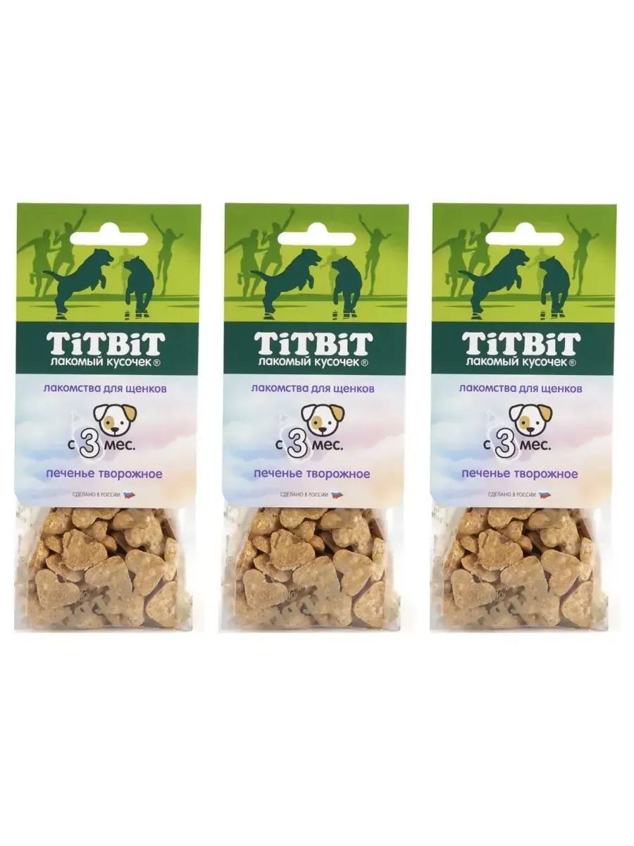 TiTBiT Лакомство печенье творожное для щенков, 70 г, 3 шт. Печенье творожное для щенков содержит природный кальций, фосфор, витамин D. Кальций необходим для формирования крепких костей и зубов. Фосфор и витамин D обеспечивают оптимальное усвоение кальция.