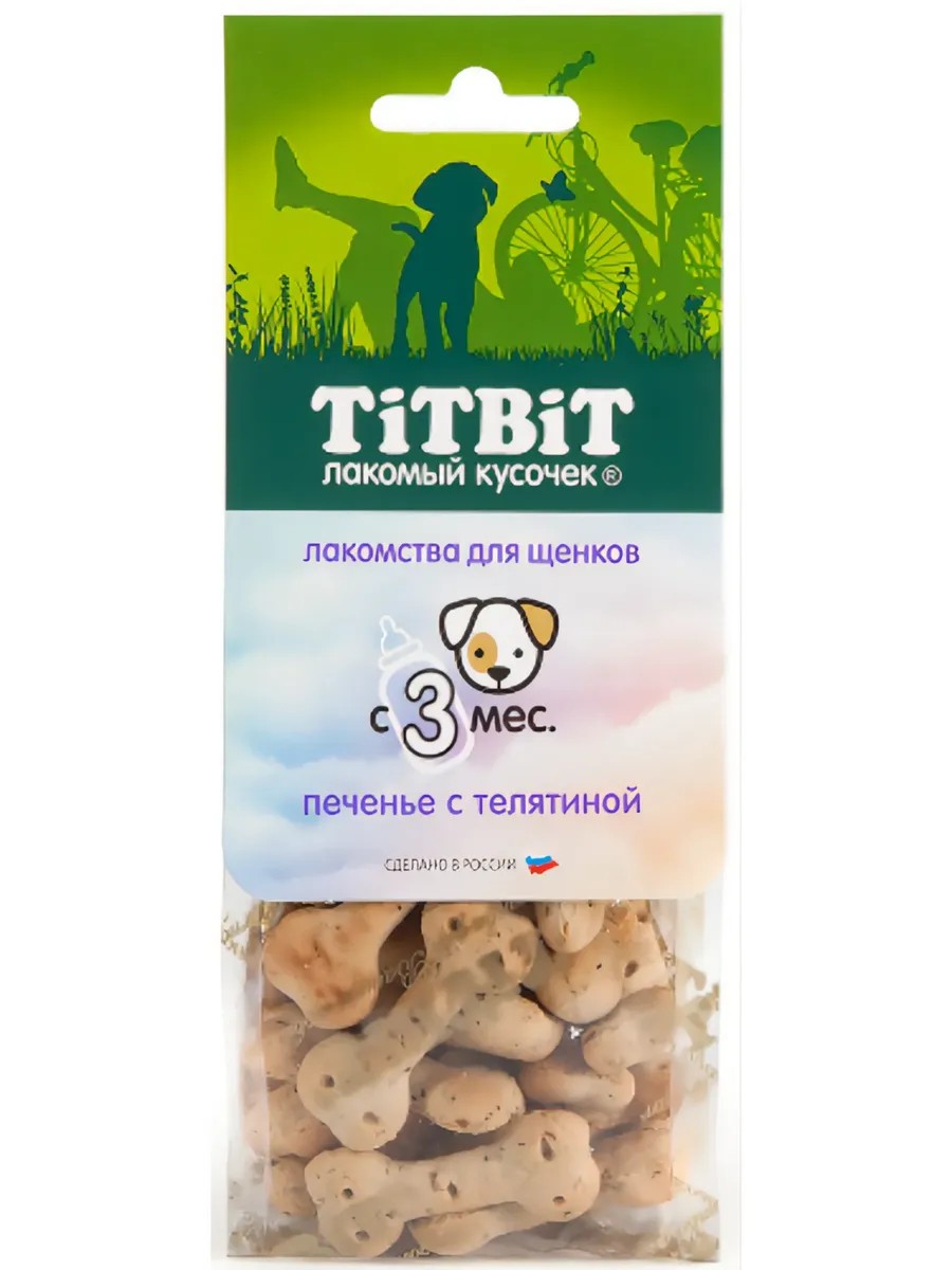 Печенье с телятиной, лакомство для щенков 70 г 1шт