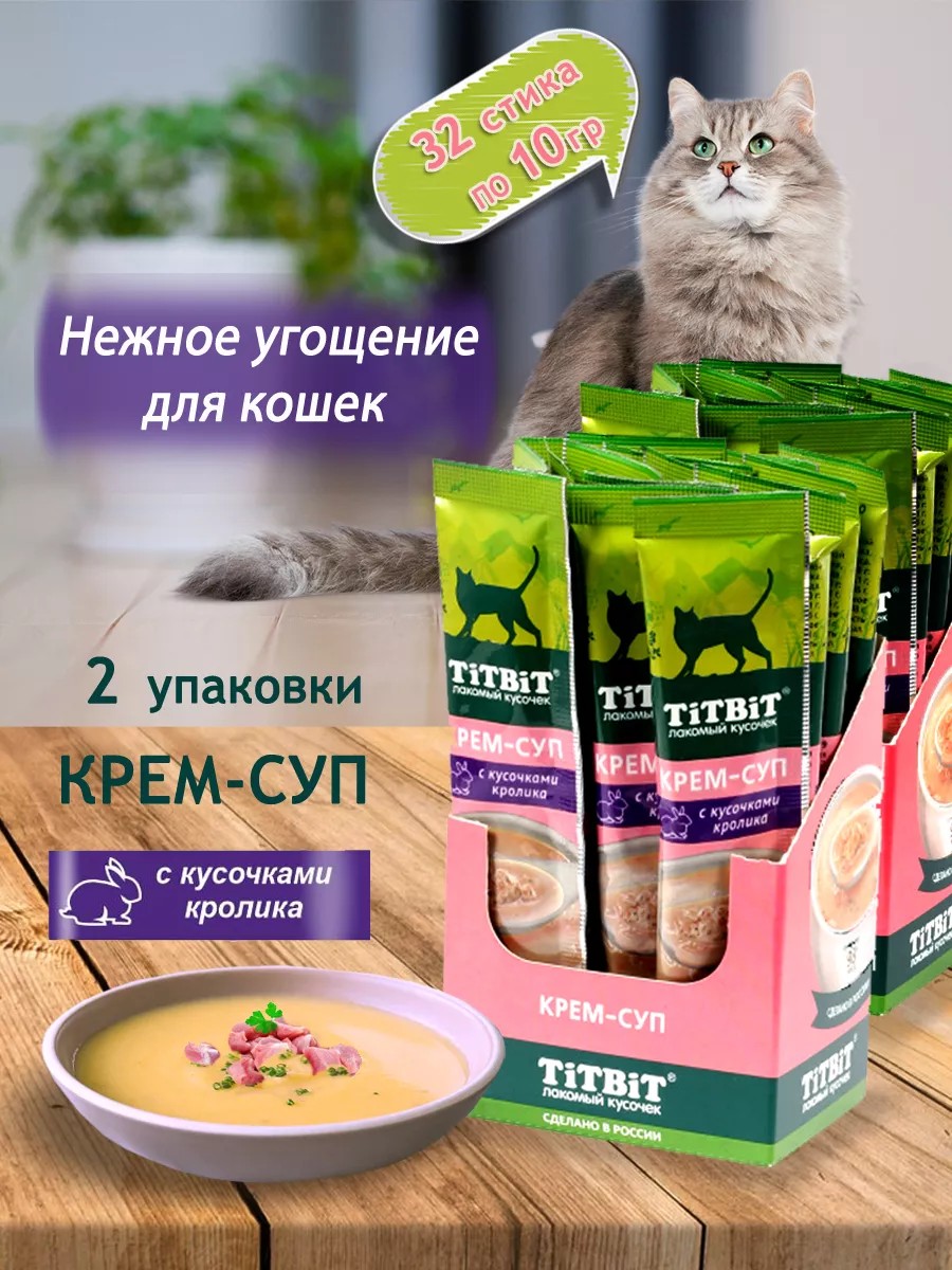 Крем-суп для кошек с кусочками кролика (32 шт)