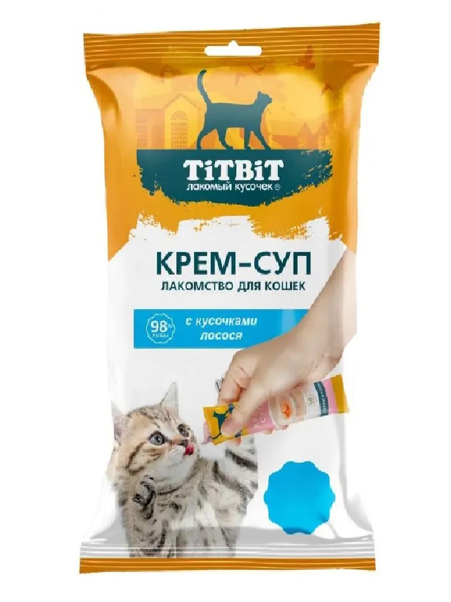 Titbit Крем-суп для кошек с кусочками лосося, 4 шт по 10 г