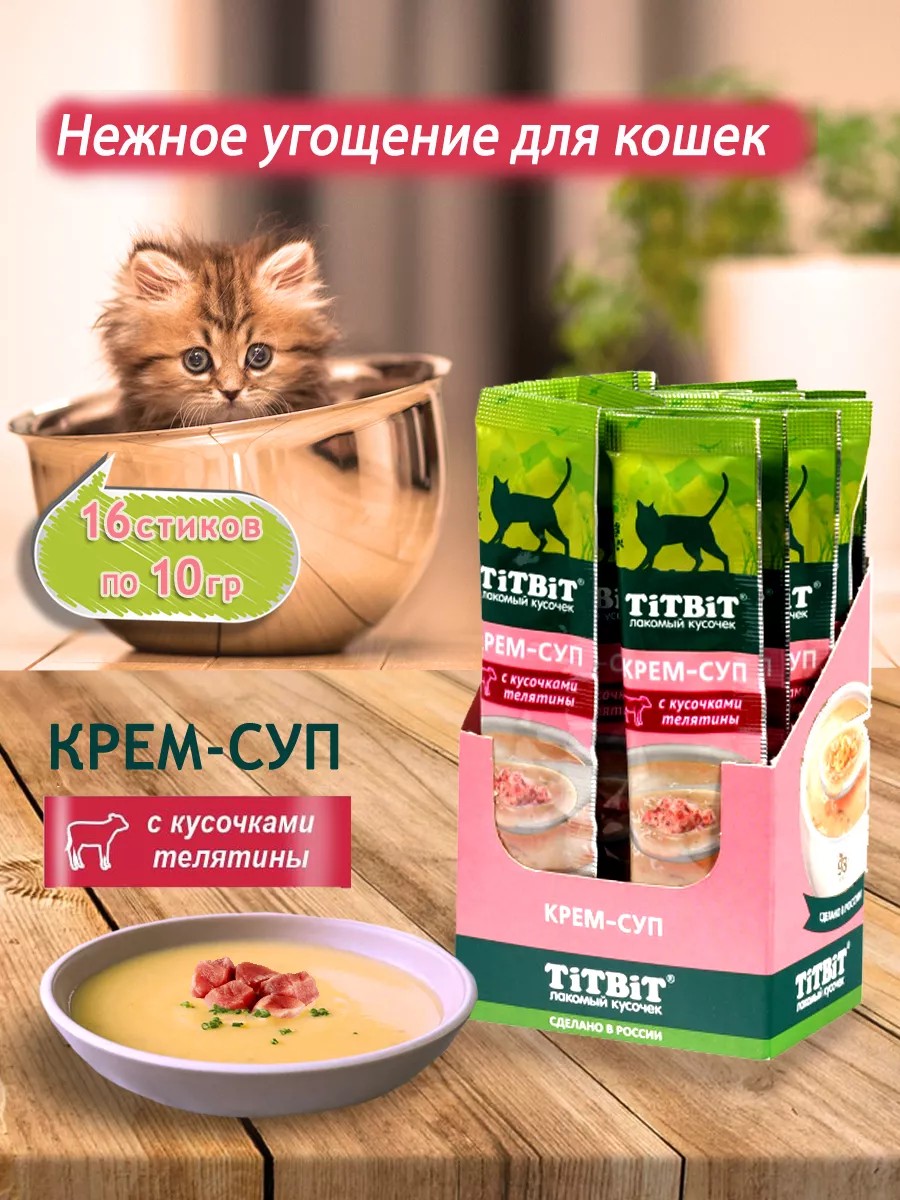 Крем-суп для кошек с кусочками телятины (16 шт)