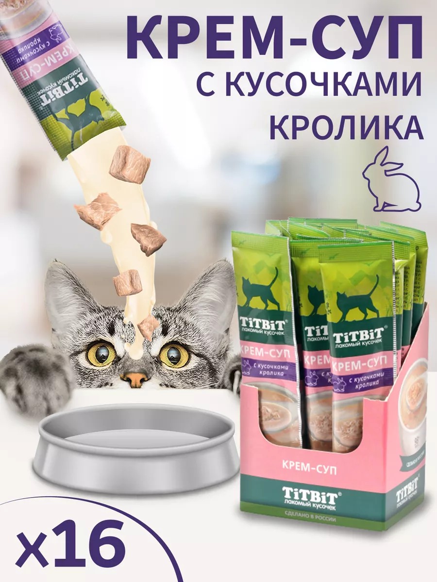 Крем-суп для кошек TITBIT – это специально разработанные вкусные и полезные продукты, которые: 1. Содержат кусочки свежего мяса; 2. Содержат 98% мясных ингредиентов; 3. Содержат дополнительные полезные ингредиенты (таурин для поддержки зрения, сердца, пищеварительной, половой и иммунной систем; морковь для поддержки зрения и пищеварения; петрушка для поддержки мочеполовой, сердечно-сосудистой и пищеварительной систем). Хранить при температуре от +4˚С до +25˚С и относительной влажности не более 75%.