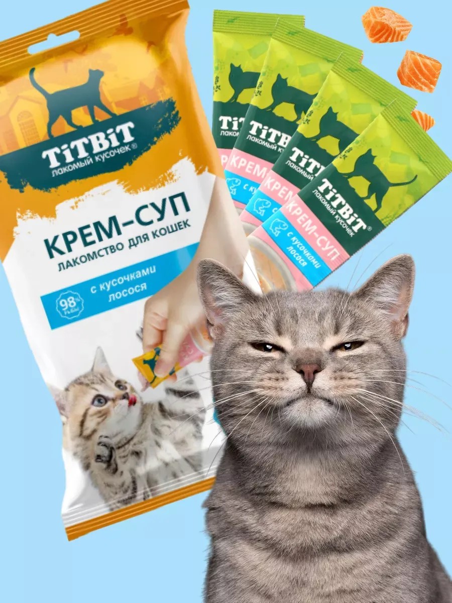 Крем-суп для кошек от TITBIT – это специально разработанный вкусный и полезный суп для кошек, который содержит: