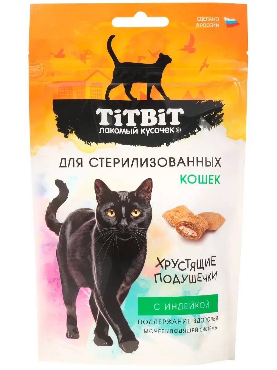 Titbit Подушечки для стерилизованных кошек хрустящие, индейка, 60 г