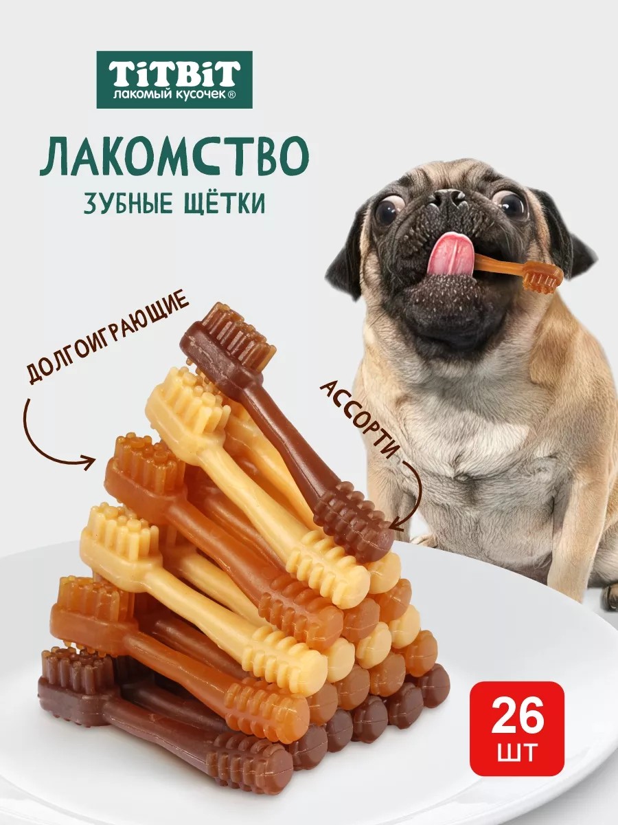 Порадуйте своего любимого маленького питомца натуральным, полезным и вкусным подарком. Рекомендованные нормы кормления на фото в карточке товара. Собачье лакомство от Титбит, выполненное в форме Зубных щеток, является хорошей альтернативой жевательных косточек и палочек для чистки зубов.
