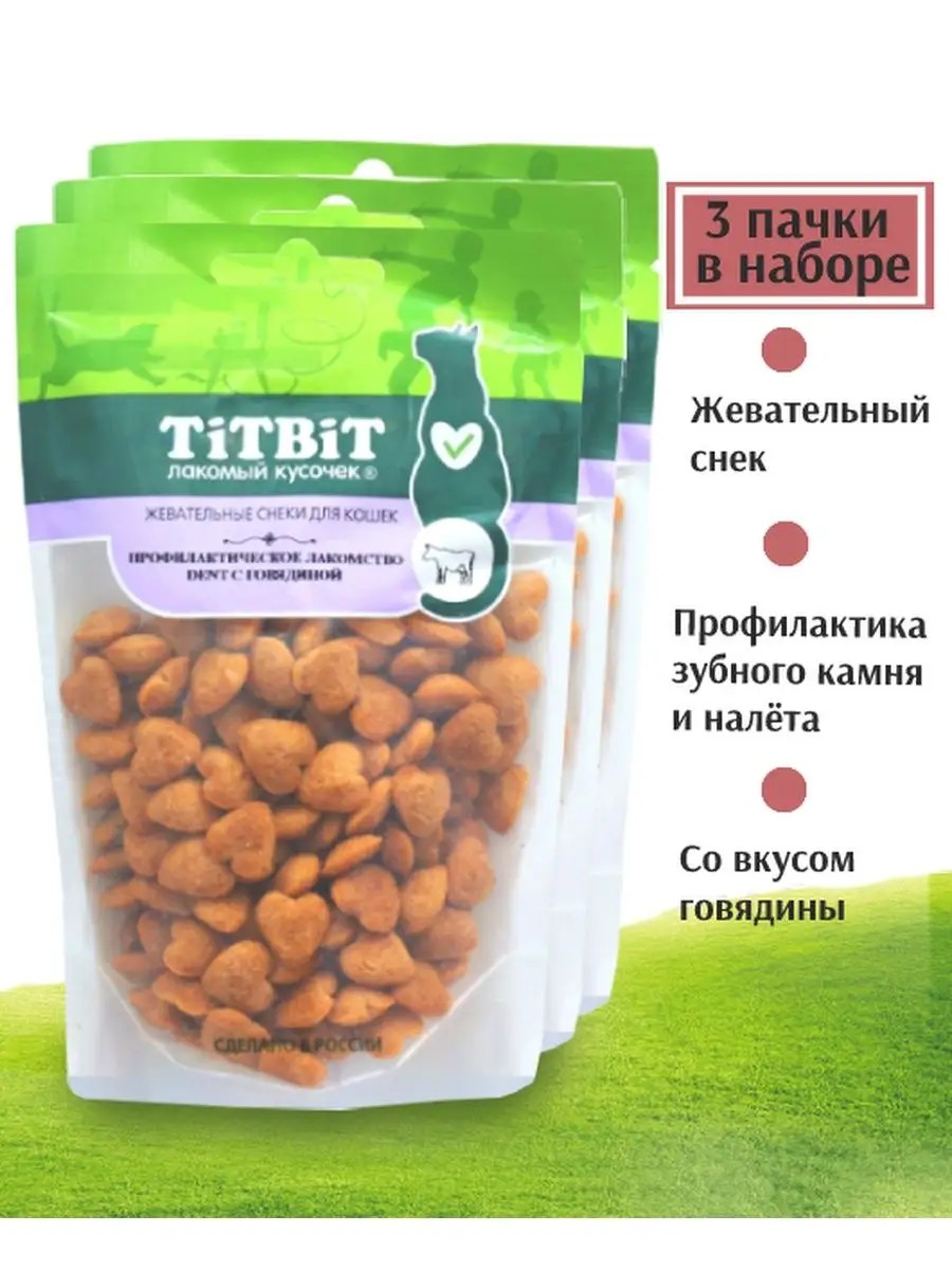 Лакомство для кошек Dent с говядиной, 3 уп 120 гр