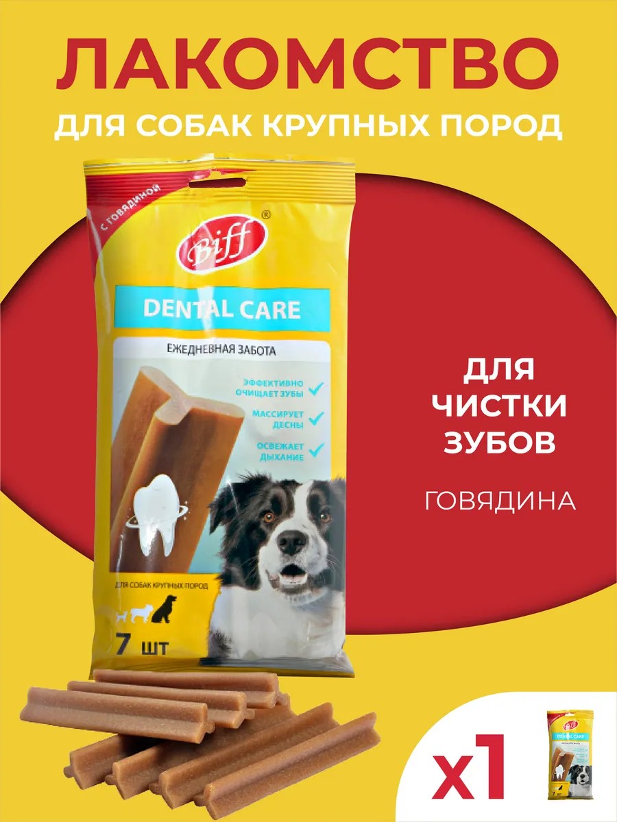 Biff Dental Care - это жевательный снек, необходимый для ежедневного ухода за ротовой полостью собак. Особая текстура и форма способствуют эффективному снятию мягкого зубного налета, снижению риска образования зубного камня и массажу десен. Фитокомплекс экстрактов растений предотвращает размножение вредных бактерий и освежает дыхание. Хранить при температуре от +4˚С до +25˚С и относительной влажности не более 75%.
