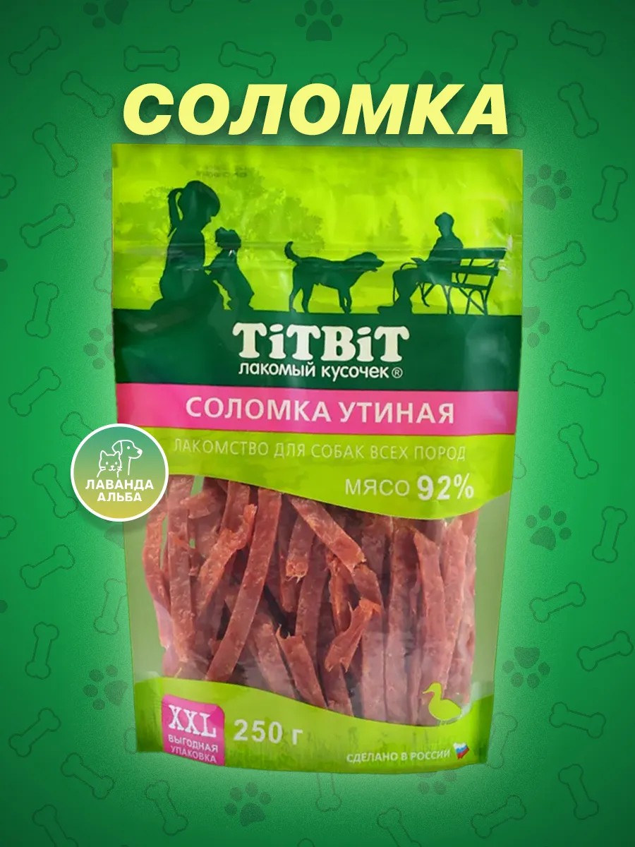 TiTBiT XXL Утиная соломка (Титбит) - вкусное и полезное лакомство для собак всех пород. Содержит 92% утки, богата белком, витаминами и минералами.