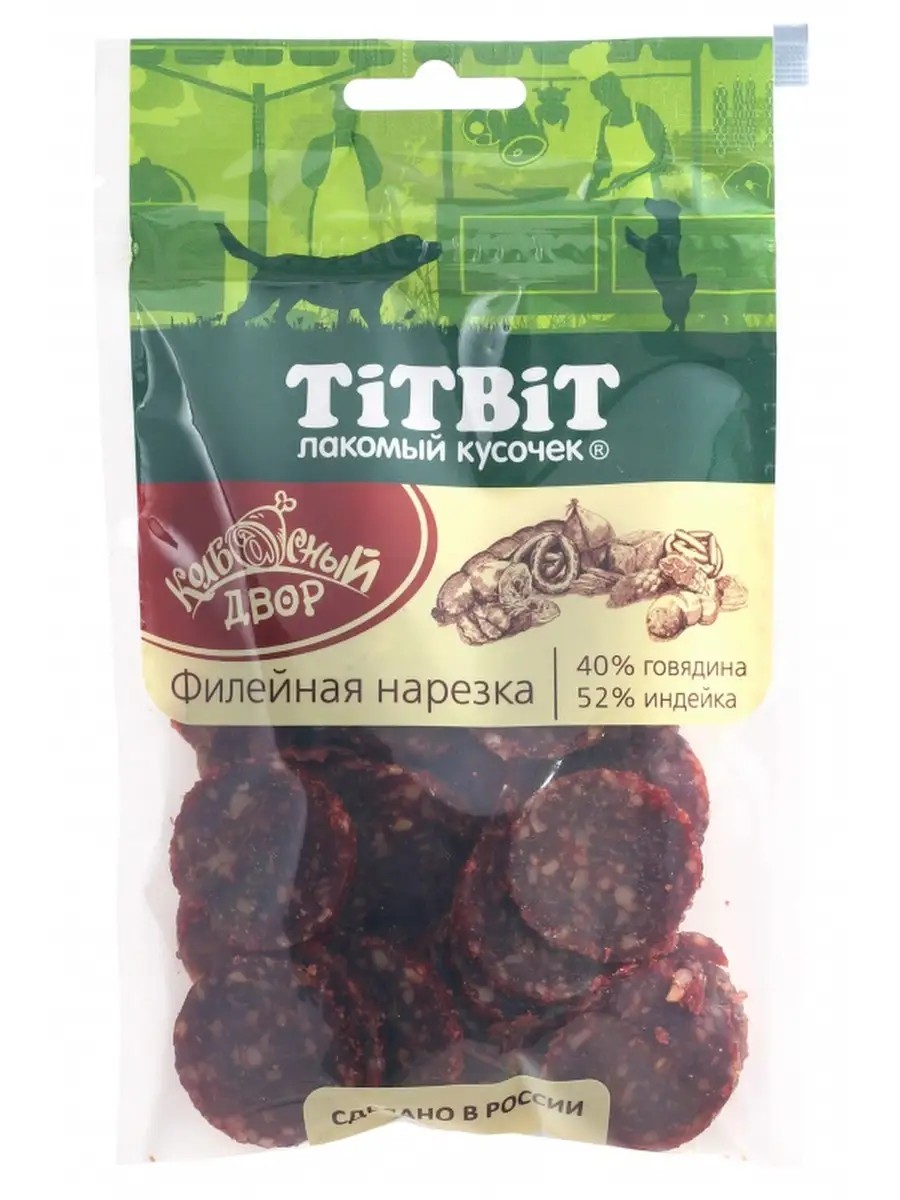 Колбасный двор для собак TitBit - это высококачественные мясные деликатесы, которые отлично подходят в качестве поощрения животного или просто побаловать своего любимца. Содержание мяса и мясных субпродуктов 92%. Не содержат соль и искусственных компонентов.