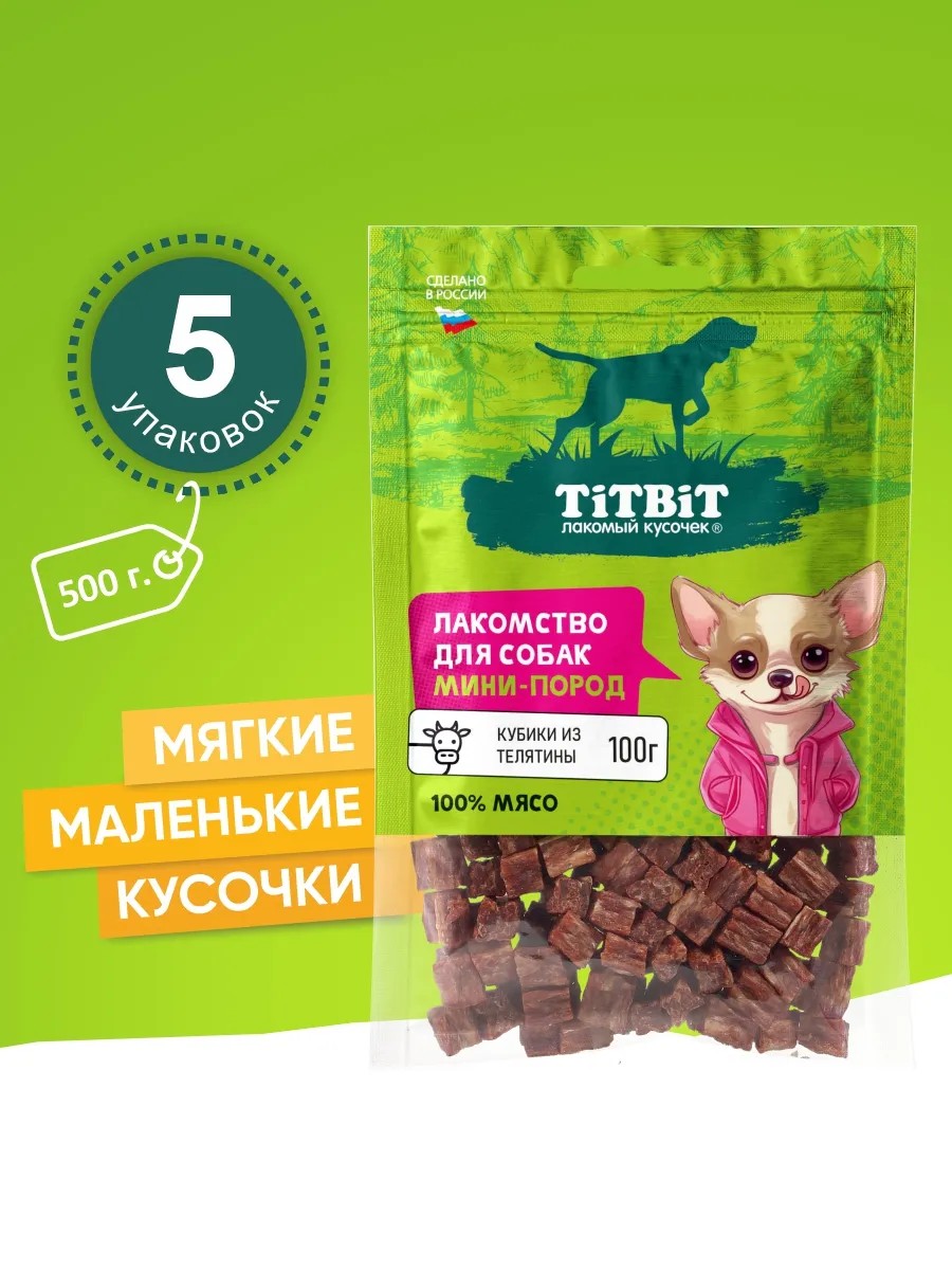 Кубики из телятины - это вкусные мясные кусочки, подходящего размера для маленьких собак, с мягкой жевательной текстурой и насыщенным ароматом, привлекут даже самых привередливых маленьких питомцев. Сделать подарок любимому другу, поощрить за хорошее поведение или использовать на дрессировке, лакомство Титбит подходит для любого случая.