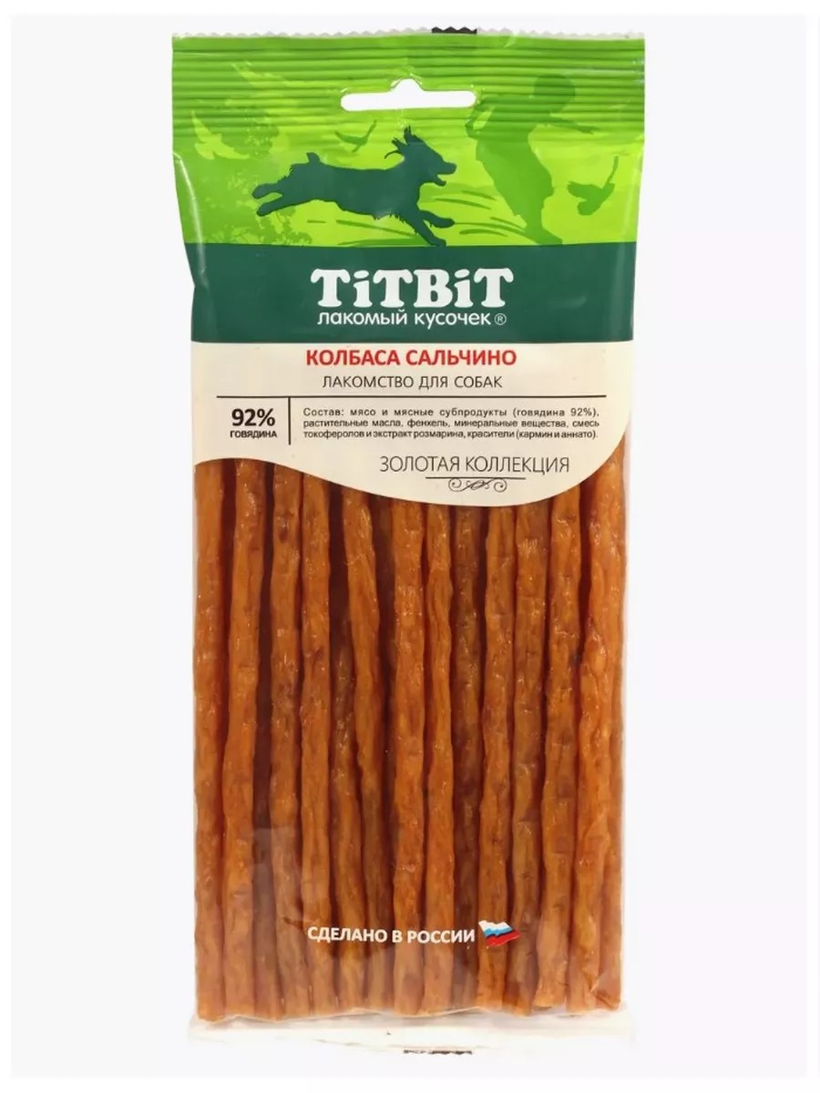 Золотая коллекция – это линейка лучших лакомств TITBIT, разработанных при участии владельцев домашних животных и их питомцев. Колбаса «Сальчино» приготовлена из говядины и дополнена щепоткой фенхеля, придающего изысканность нежному вкусу.