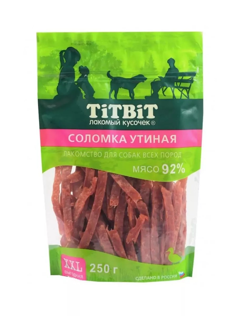 TiTBiT Лакомство для собак Соломка утиная XXL 250г