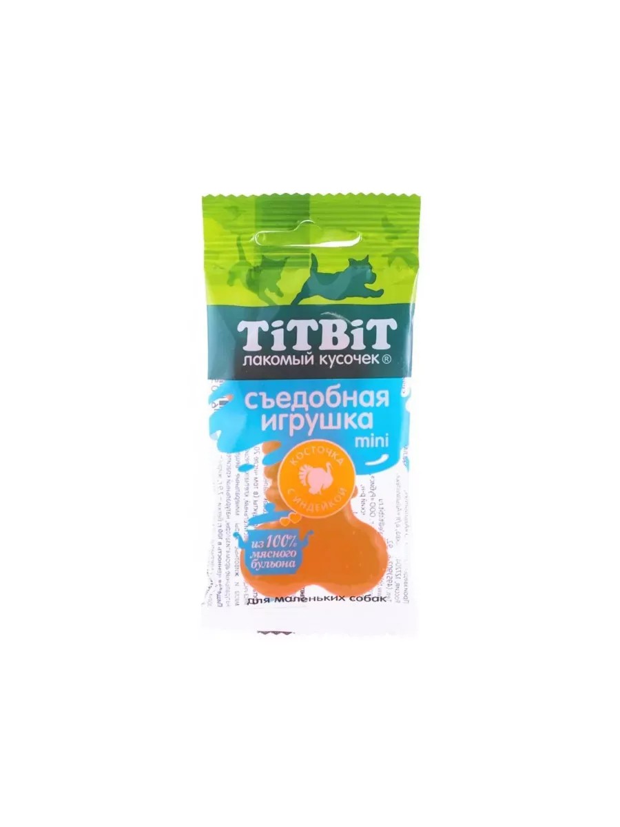 Титбит Лакомство для собак Титбит, съедобная игрушка mini Косточка с индейкой 20г