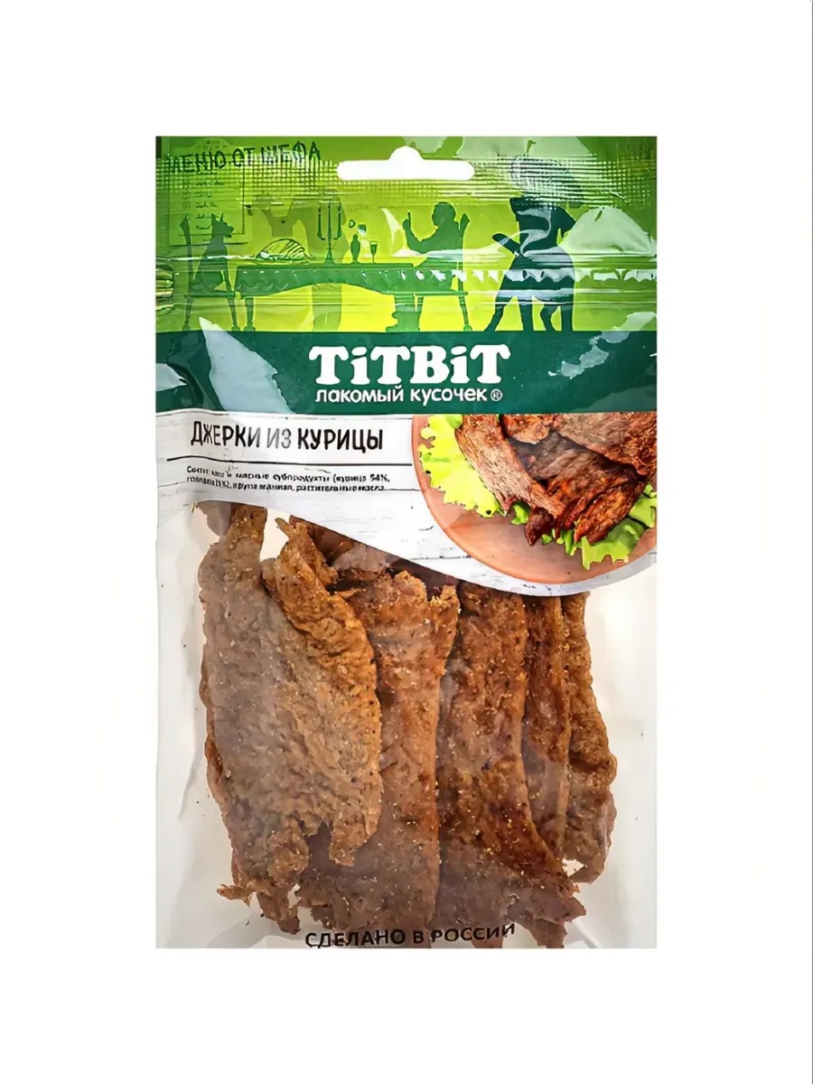 Джерки мясные из курицы Titbit, Меню от Шефа 70г – это вкусное и полезное угощение для вашего питомца, которое поможет поддерживать его активность и здоровье.