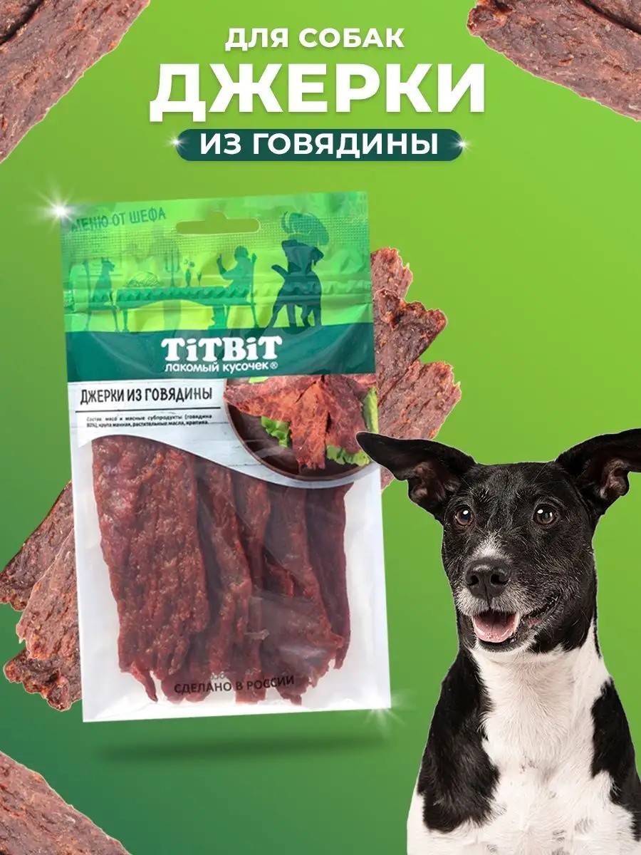 Лакомство для собак джерки из говядины 70 гр. Джерки мясные из говядины - легкоусвояемое сушено-вяленое угощение из свежего мяса. Благодаря естественному вялению джерки сохраняют всю насыщенность мясного вкуса, а так же полезные витамины и минералы.
