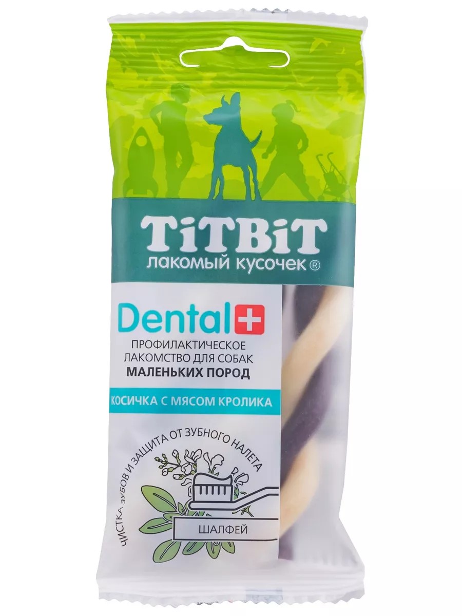 Профилактическое лакомство Dental+ Косичка с мясом кролика для собак маленьких пород содержит шалфей, который обладает кровоостанавливающим и противовоспалительным действием. Ежедневное употребление лакомства способствует защите от зубного налета и снижению образования зубного камня у собаки.