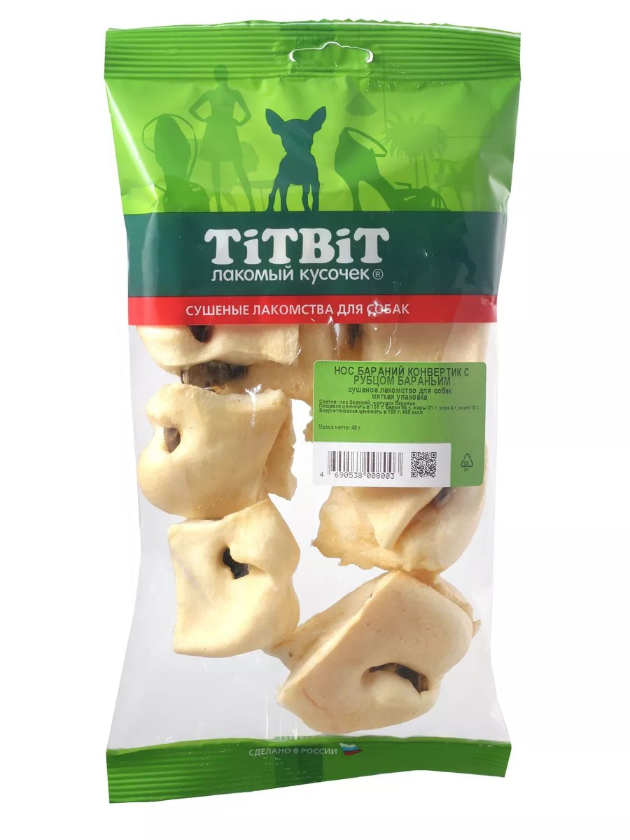 The package contains 4-5 dried lamb noses, folded into an envelope with lamb tripe inside. Low-calorie, hypoallergenic. The high content of collagen and elastin fibers provides the body with essential components for the growth and maintenance of your pet's cartilage. Lamb tripe will eliminate vitamin deficiencies and improve your pet's appetite. The high content of protein, cartilage, and connective tissue helps improve the formation of ear cartilage (for dog breeds whose standard requires upright ears).