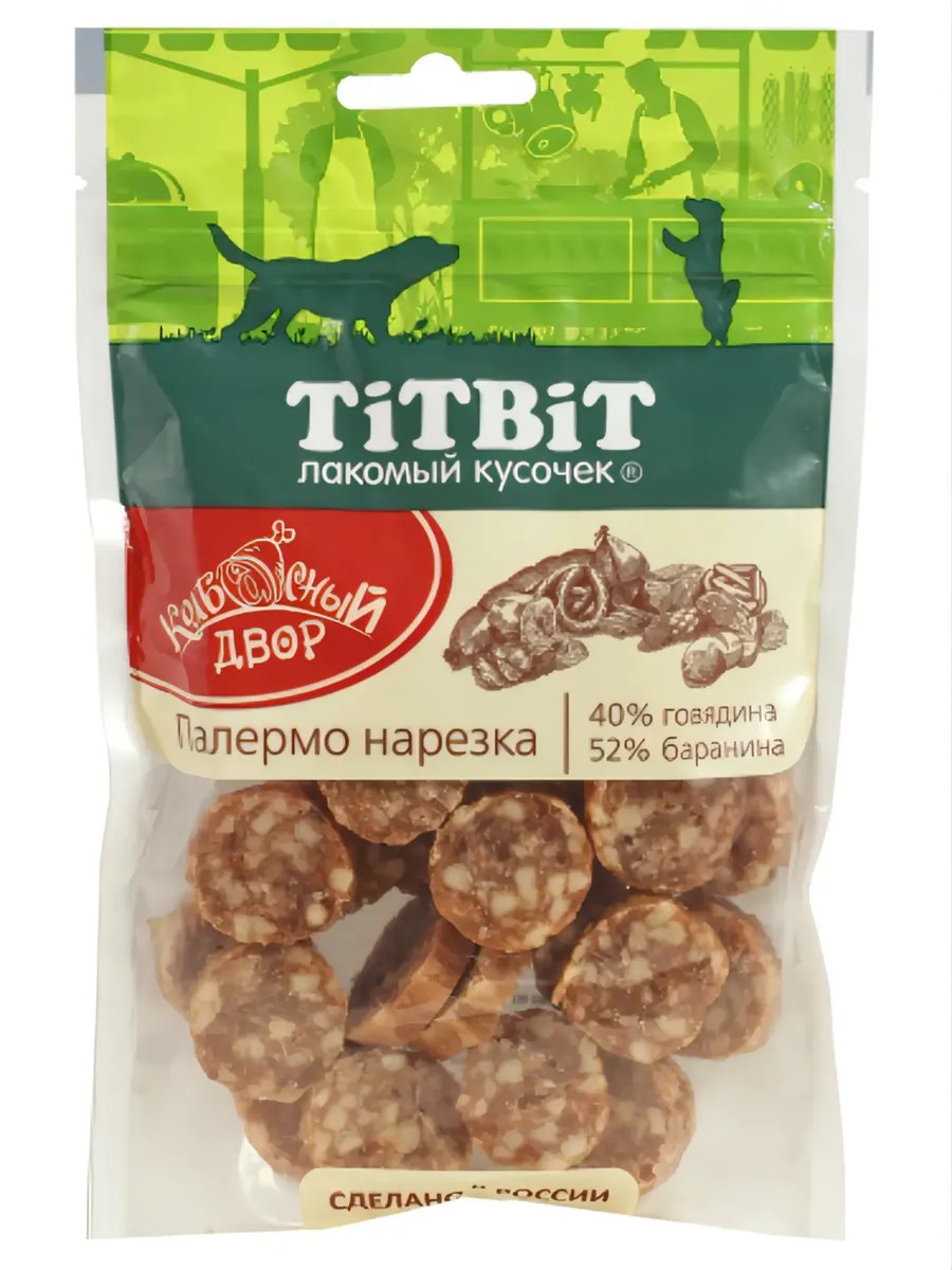Колбасный двор для собак TitBit – это высококачественные мясные деликатесы, которые отлично подходят в качестве поощрения животного или просто побаловать своего любимца. Содержание мяса и мясных субпродуктов 92%. Не содержат соль и искусственных компонентов. Единственные мясные колбасы, представленные в виде нарезки!
