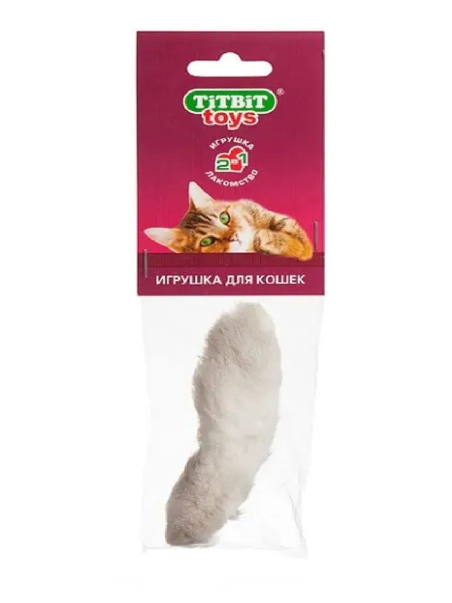 Titbit, Fluffy Paw Cat Treat Toy, 16g. An attractive natural cat toy—dried rabbit paws with skin and fur. The natural scent of prey encourages active play. Purpose: for play and teeth cleaning. This toy helps train dexterity, visual perception, and strategic planning skills. Storage: Store at temperatures from +4°C to +25°C and a relative humidity of no more than 75%. It contains no synthetic additives, making it safe for cats.