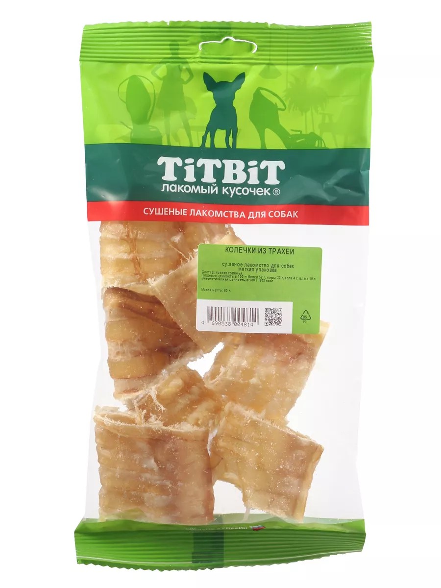 Высушенная говяжья трахея, нарезанная поперёк. Упаковка содержит 10-18 колечек шириной до 3 см. Низкокалорийное, богатое хрящевой и соединительной тканью лакомство. Рекомендуется для удаления зубного налета, профилактики зубного камня. Улучшает состояние кожи и шерсти. Великолепно скрасит досуг собак преклонного возраста, а также собак с неполной зубной формулой.