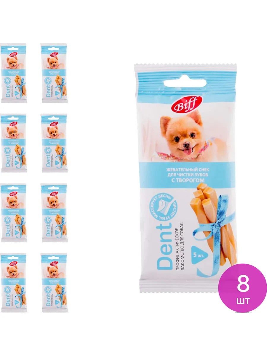 Лакомство для собак Titbit / Титбит Dent Жевательный снек для чистки зубов для животных мини пород с творогом 20г / вкусняшки. Комплект состоит из 8 шт. Цена за комплект. Лакомство для собак Titbit Dent Жевательный снек - лучший вариант угощения для вашего питомца! Для собак лакомства 100% понравятся вашему четвероногому другу! Biff Dent с творогом - это жевательный снек для собак, необходимый для снятия мягкого зубного налёта, снижения уровня зубного камня и массажа дёсен за счет специально разработанной формы и текстуры, используется в качестве лакомства и поощрения. Рекомендуется для собак миниатюрных пород. Вкусняшки для собак Titbit сделаны из натуральных ингредиентов: рис, творог сублимированный, белок растительный, клетчатка, лецитин, масла и животные жиры, дрожжевой экстракт, минеральные вещества, фитокомплекс экстрактов растений, натуральный ароматизатор, натуральный краситель, их приятный запах и отменный вкус точно придутся по вкусу вашей собаке. Угощение для собак не содержит ГМО, усилителей вкуса. Угощение для собак содержит большое число витаминов и макроэлементов, что положительно влияет на пищеварение, состояние шерсти и кожи. Для собак лакомства массируют десны, чистят зубы вашей собаки. Лакомство для собак Titbit Dent Жевательный снек порадует вашего питомца, обеспечит его здоровье и отличное настроение! Корм для собак / лакомства для собак мелких пород / товары для животных.