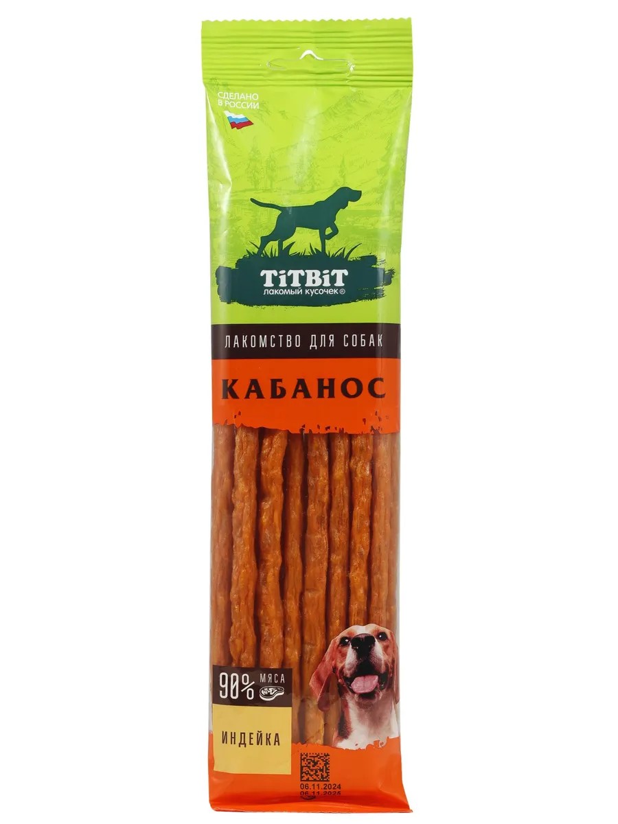 Kabanos is a line of meat delicacies similar to hunting sausages for humans. Convenient in format and attractive in appearance. These sausages are specially designed for the pleasure and health of your pet: - Appetizing meat aroma for your pet; - Made from high-quality meat ingredients (90%); - Based on food production technology; - Highly palatable; - Fully adapted to the physiological characteristics of dogs and therefore do not contain non-recommended ingredients. Kabanos sausages are not only a high-quality and tasty treat, but also a great way to strengthen the bond between you and your pet. The recommended consumption rate is 10% of the daily diet of an animal over 12 weeks old. Provide your pet with access to fresh drinking water.