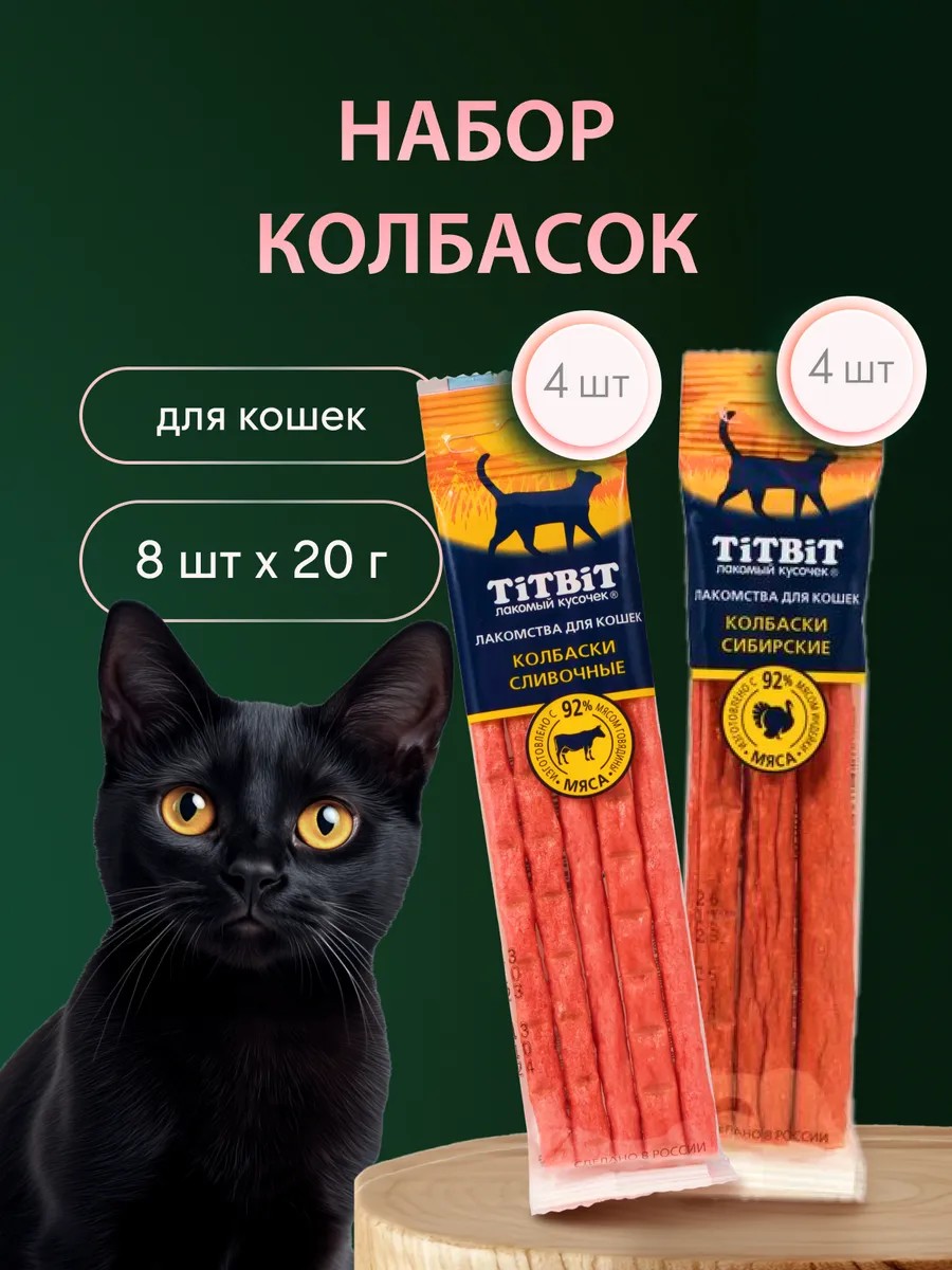 Titbit Колбаски для кошек Сибирские, Сливочные 8 шт по 20г