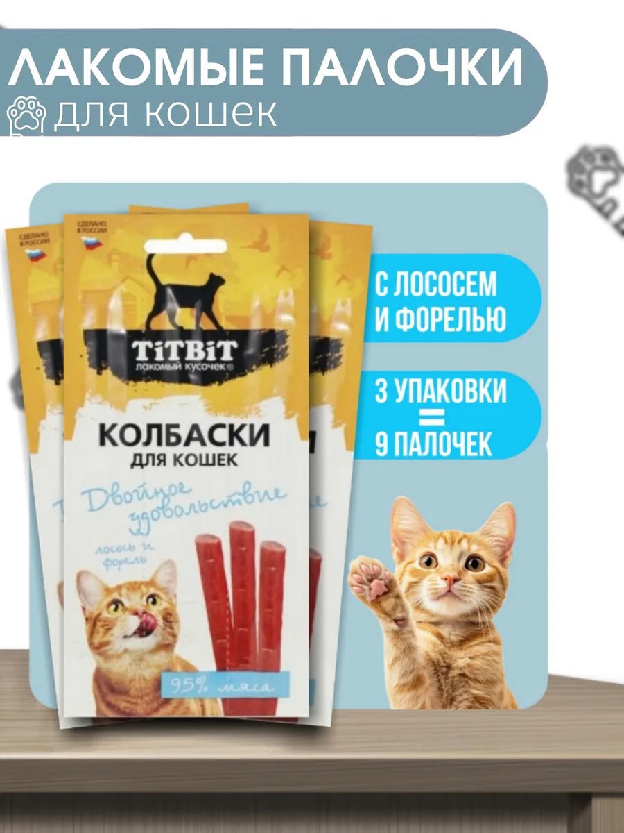 TiTBiT salmon and trout cat sticks are delicious and healthy treats that are a great way to pamper your pet. Made with natural ingredients, including salmon and trout, these sticks are rich in protein and beneficial micronutrients, which help support your cat's health and immunity. With their delicious aroma and texture, TiTBiT sticks are the perfect treat for training or simply to please your pet. A pack of 3 sticks lasts for several days, allowing your furry friend to enjoy this delicious and healthy treat.