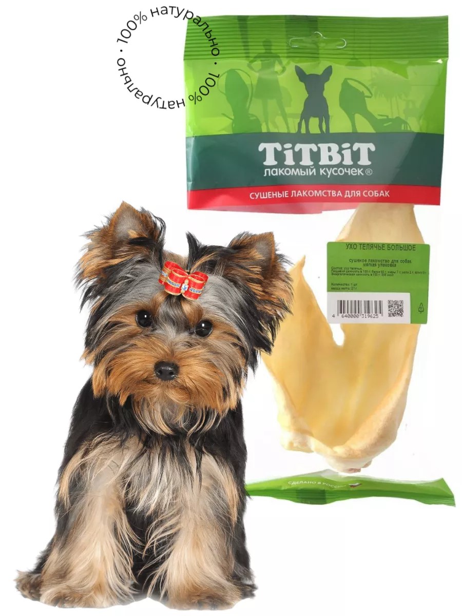 Лакомство для собак Titbit / Титбит Ухо телячье большое для крупных пород 27г / снеки для животных / жевательные косточки. У собак много инстинктов и природных привычек: они любят кусать, жевать все, что им интересно и привлекательно. Из-за гиперактивности вашего питомца может пострадать мебель дома. Подобные неприятности легко предотвратить заранее с помощью специальных средств. Одним из них является лакомство для собак Titbit Ухо телячье большое. Жевательные косточки помогают в уходе за зубами, а главное - удовлетворяют важный природный инстинкт. К тому же, его без проблем можно использовать в качестве поощрения за правильное выполнение команд. Собачье лакомство изготовлено только из натуральных и полезных ингредиентов. Высокое содержание коллагеновых и эластиновых волокон обеспечивает поступление в организм незаменимых компонентов для роста и поддержания качества хрящевой ткани суставов Вашего питомца. Высокое содержание коллагена и эластина способствует улучшению формирования ушного хряща для пород собак, стандартом которых предусмотрен вертикальный постав ушной раковины. Хотите обучить своего четвероногого друга нескольким простым командам или просто удовлетворить его потребности в жевании и кусании? Купите лакомство Titbit ухо телячье большое! Лакомство для собак для зубов / снеки для собак / сушеные лакомства для собак / собачий корм.