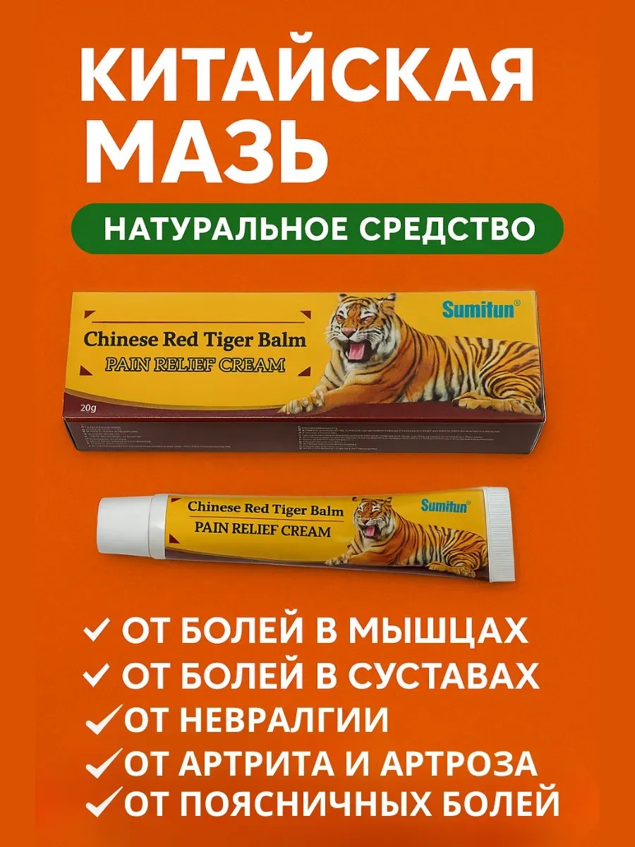 Обезболивающий крем для суставов – это эффективное средство, созданное для снятия дискомфорта и улучшения самочувствия. Упаковка выделяется ярким дизайном с изображением тигра, что символизирует силу и мощь действия.
