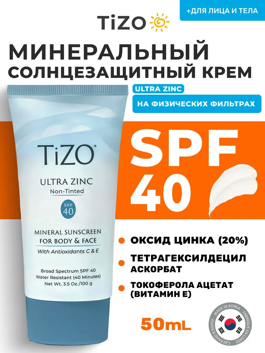 Глубокая и надежная защита кожи от вредного солнечного воздействия обеспечана вам с TIZO Ultra Zinc SPF 40 Tinted! Крем для лица и тела с оттенком позволяет избежать обезвоживание тканей, обеспечить идеально ровный тон, вне зависимости от природного оттенка кожи, выровнить текстуру, скрыв все неровности и изъяны, насытить клетки витаминами и укрепить естественный защитный барьер, сохранить здоровье и продлить молодости вашей кожи! Солнцезащитный крем, также, гарантирует стабильную защиту от ультрафиолета в самых неблагоприятных условиях. В состав этой вариации продукта добавлен самый безопасный тонирующий компонент — оксид железа.