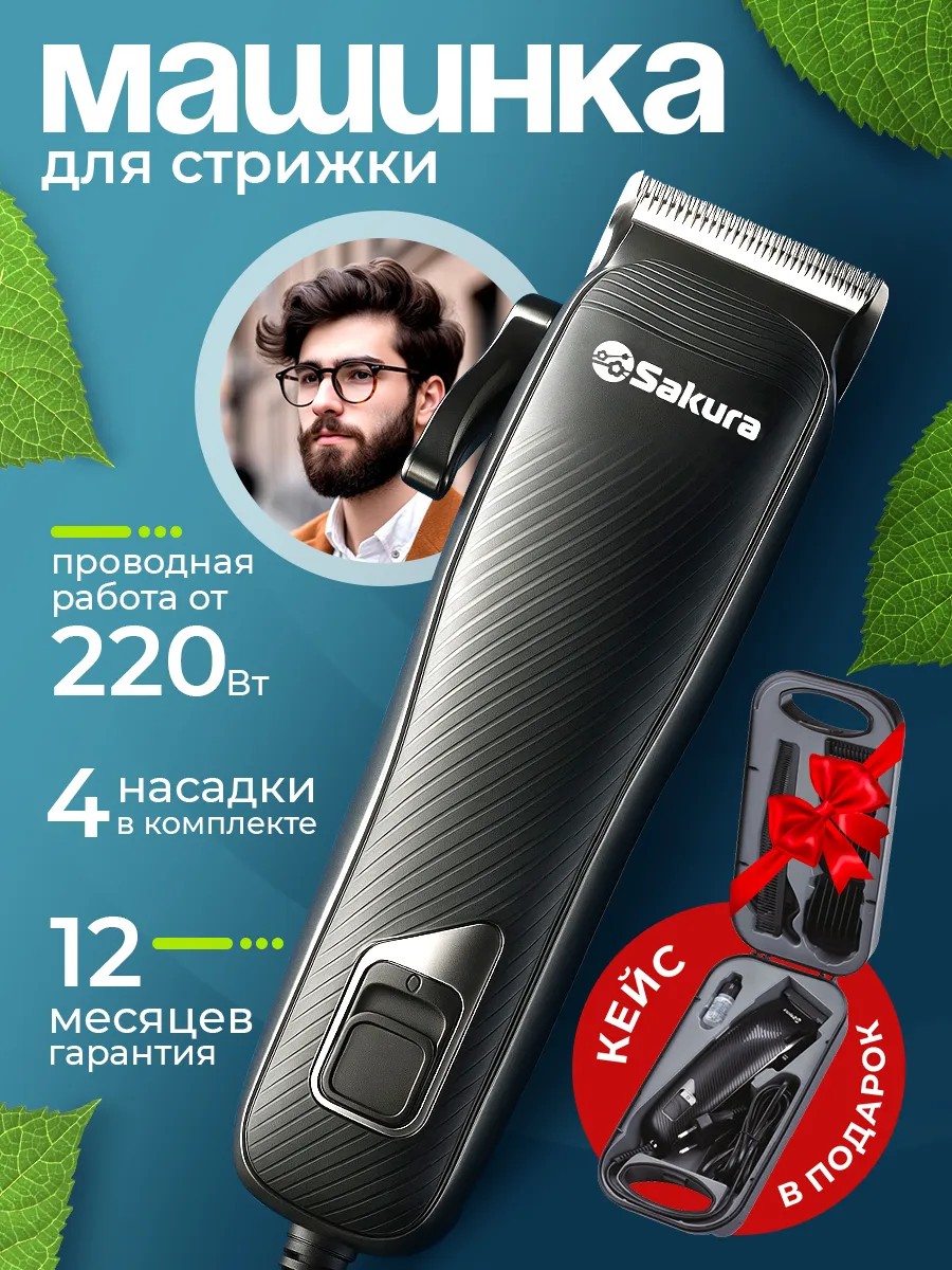 ТМ SAKURA Машинка для стрижки волос с кейсом SA-5117BK
