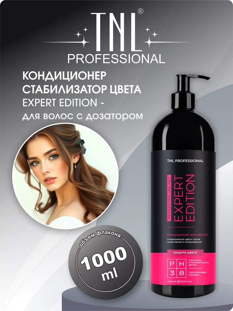 TNL Expert Edition Hair Color Stabilizer Conditioner is a voluminous conditioner. This conditioner is used to complete chemical treatments (coloring, bleaching, straightening, perming) to restore the natural pH of the hair and scalp. It stabilizes and locks in color pigments, maintaining long-lasting results. The product is enriched with collagen, hyaluronic acid, and vitamin B3. For maximum results, use with TNL Expert Edition Hair Color Stabilizer Shampoo.