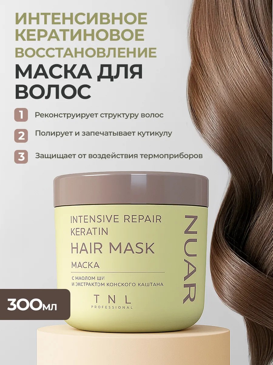 Маска для волос NUAR интенсивное кератиновое восстановление с маслом ши и экстрактом конского каштана от Тнл в объеме 300 мл