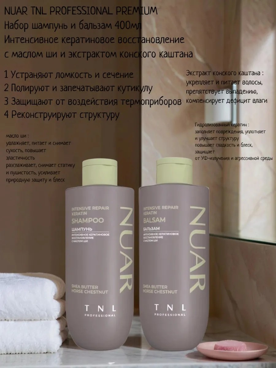 TNL PROFESSIONAL Набор шампунь и бальзам для волос NUAR кератиновое восстановление TNL, 800 мл