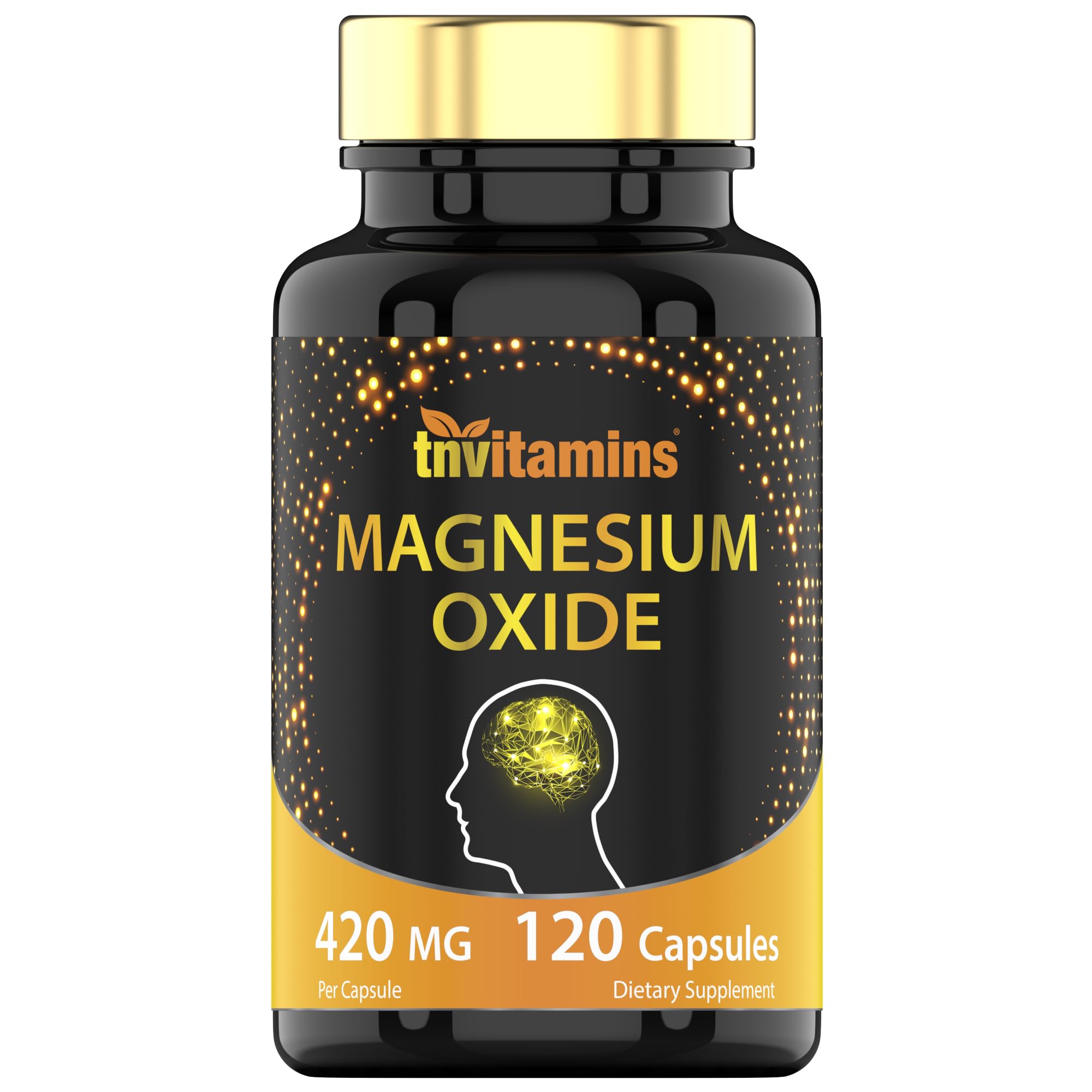 ✓ TNVitamins Magnesium Oxide Capsules are Non-GMO and Made in the USA! Our Magnesium Oxide 420 mg is also free of: Gluten, Wheat, Yeast, Peanuts, Tree Nuts, Soy, Dairy (Milk Eggs), Fish, Crustaceans, Artificial Colors, Flavors, and Preservatives!. ✓ Magnesium Oxide Has Many Health Benefits! Many People May Use Magnesium Oxide Capsules for Digestive and Head Health. Other Uses Include Nerve, Muscle, Joint, and Bone Health Support! . ✓ Each Bottle of TNVitamins Magnesium Oxide Capsules Contains a Four (4) Month Supply!. ✓ 420 mg or 100 of The FDA's Recommended Daily Value of Magnesium Oxide Per 1 Capsule Serving!. ✓ TNVitamins Magnesium Oxide 420 mg Capsules - 120 Capsules.
