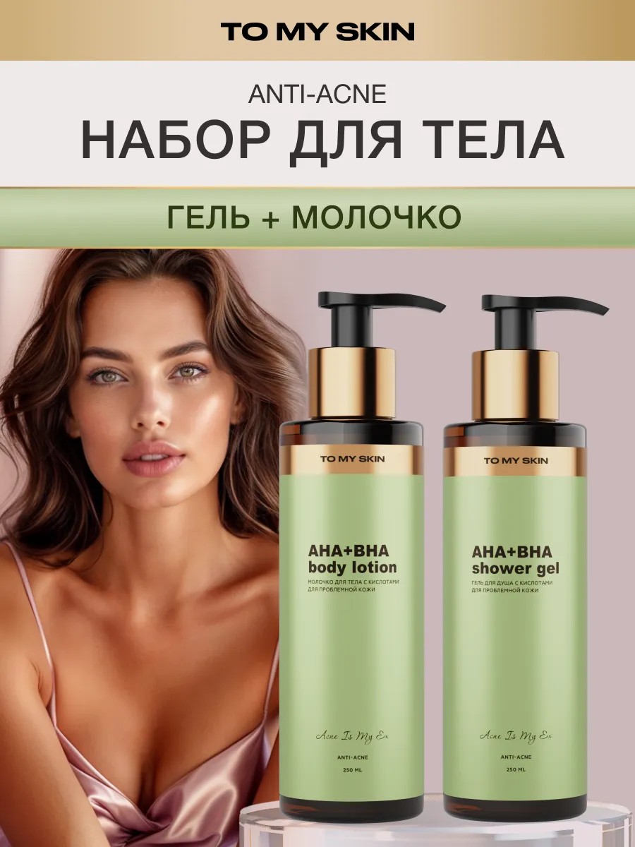 Набор уходовой косметики TO MY SKIN гель для душа + молочко для тела с кислотами - мощная комбинация средств в борьбе с акне на теле.