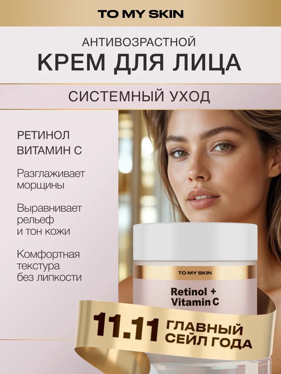 Крем от морщин содержит ретинол — мощный омолаживающий компонент, который стимулирует клеточное обновление и выработку коллагена. Крем с ретинолом восстанавливает тонус кожи, разглаживает ее рельеф и возвращает здоровый цвет лица. Крем увлажняющий для лица содержит витамин С в сочетании с гиалуроновой кислотой, которые повышают эффективность воздействия ретинола. Отбеливающий крем для лица с витамином С выравнивает тон кожи и осветляет пигментацию. Увлажняющий крем с пантенолом и алоэ вера устраняет обезвоженность и шелушение кожи. Крем для сухой кожи лица не позволяет ей терять влагу, укрепляя гидролипидный барьер.