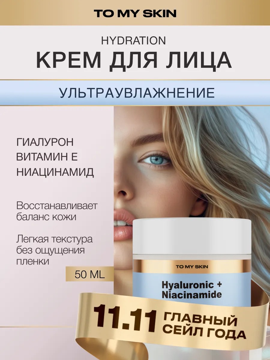 Крем для лица увлажняющий Hyaluronic + Niacinamide, 50 мл
