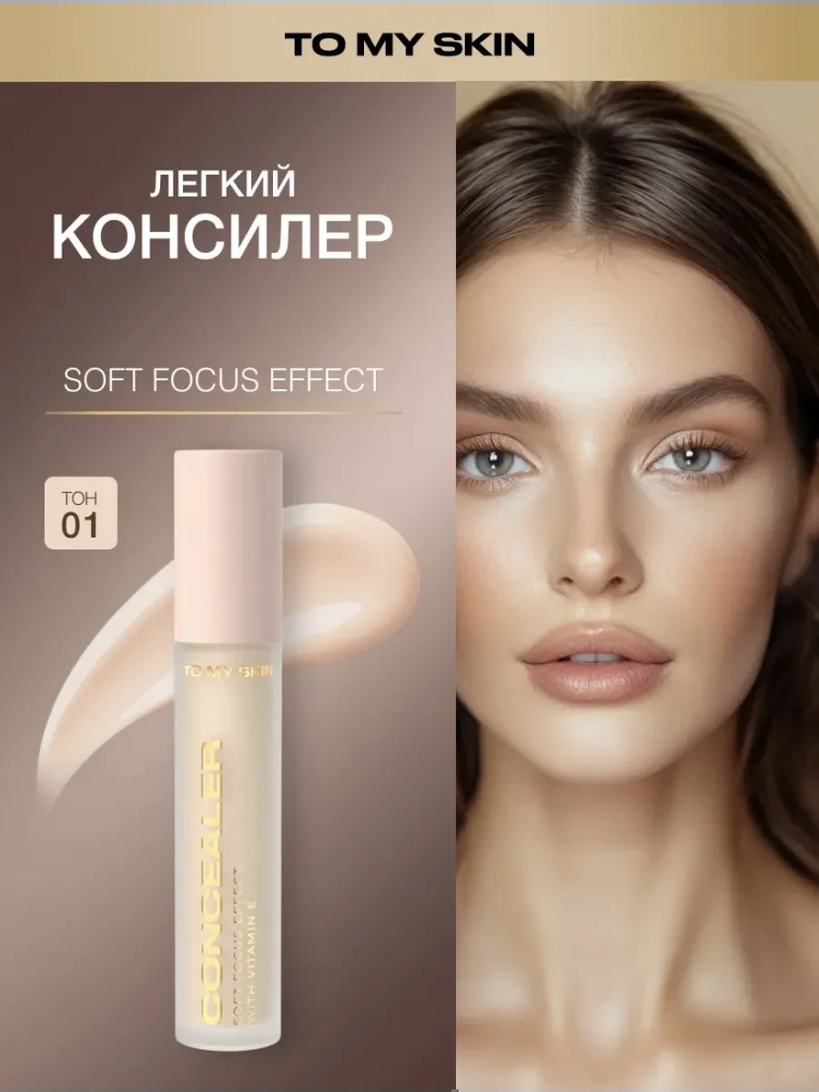 Консилер soft focus effect 01 To My Skin — это незаменимый помощник для создания безупречного макияжа. Его легкая текстура идеально сливается с кожей, маскируя несовершенства и выравнивая тон лица. Консилер обладает эффектом soft focus, который размывает мелкие морщинки и придает коже сияющий вид. Подходит для всех типов кожи и может использоваться как самостоятельно, так и в качестве основы под макияж. С его помощью вы сможете легко скрыть темные круги под глазами, покраснения и другие недостатки, создавая естественный и свежий образ.