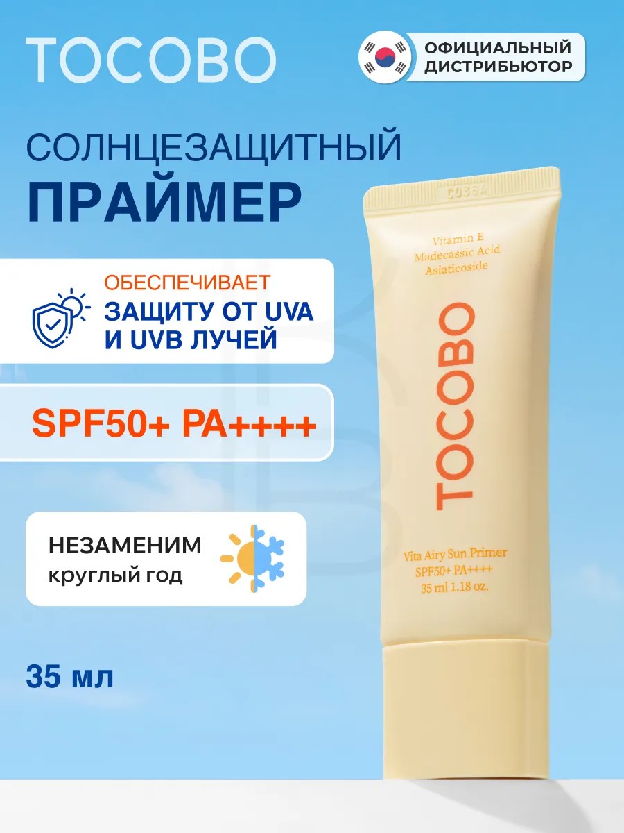 Подарите коже сияние и безопасность с корейским солнцезащитным кремом-праймером Tocobo! Компактный размер, высокая эффективность и роскошный уход — ваш секрет безупречного лица.